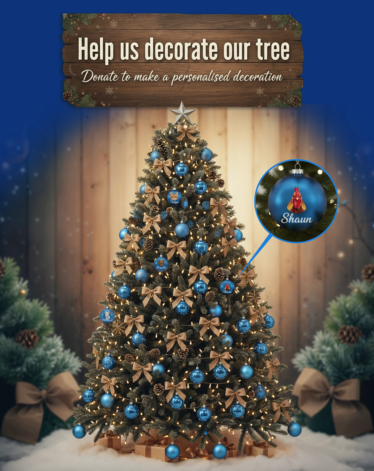 They’ll receive a personalised bauble for our Christmas Tree and a thank-you letter that reads: